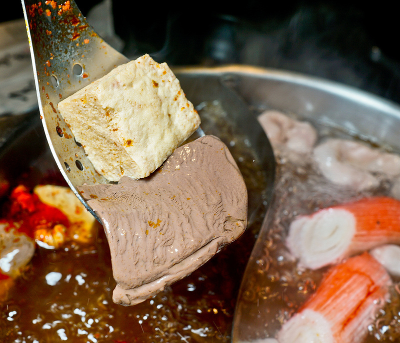 麻辣鍋的鴨血與豆腐也是在自助區自取,並沒有直接放在湯頭裡