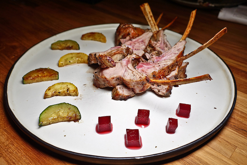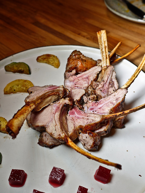 小牛排很少台灣餐廳敢嘗試,主要是因為客人會覺得『你這不像牛肉』,這也是事實,因為外型看來很像常見的羊排,而且雖然極嫩又鮮美,它的肉味是比較淡的。要料理到美味就真的要看技術