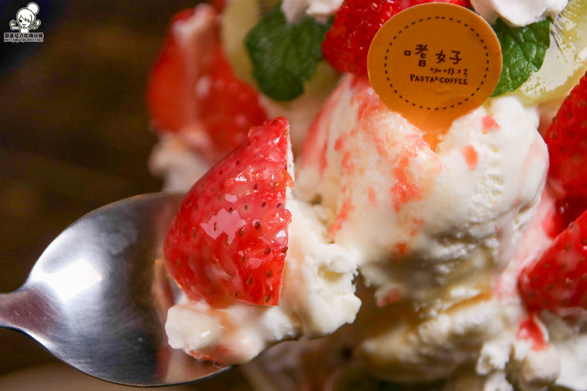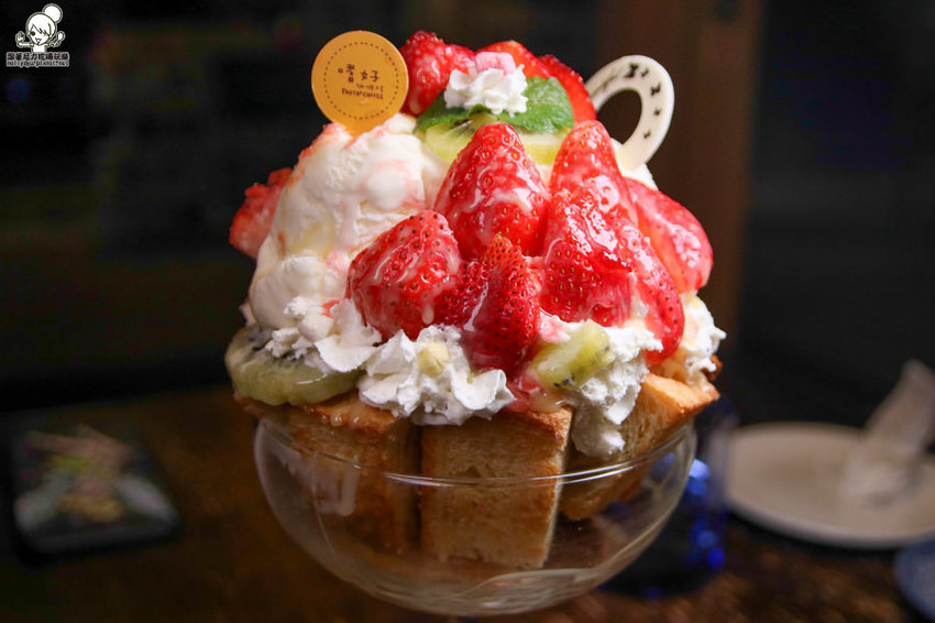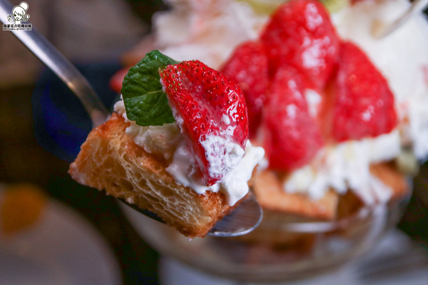層層堆疊的餡料搭配新鮮現切的草莓堆疊,讓女孩們超愛金磚聖代