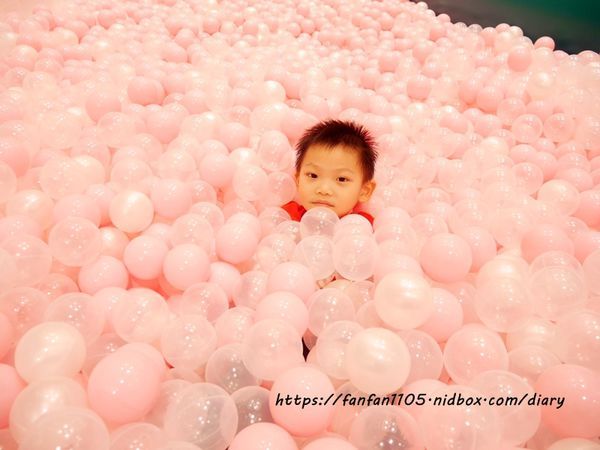 滑下來後寶貝就在大洋球池中享受球海的洗禮,彷彿像是飄在海面上的感覺