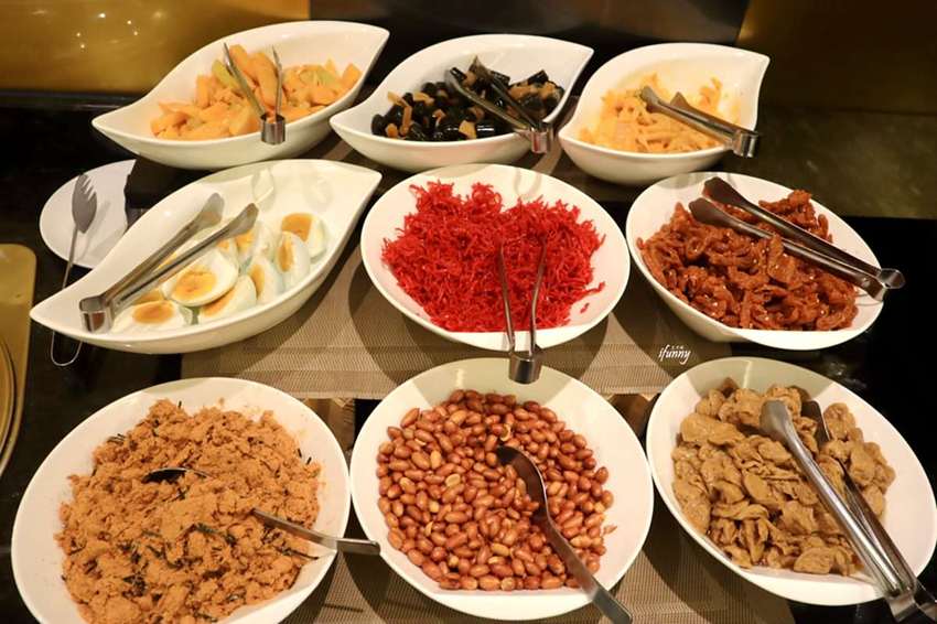 清粥當然要配小菜啊!肉鬆、花生、辣筍乾、豆棗等,這些都是台灣人家中熟悉的配菜。宵夜的準備是比較簡約的。