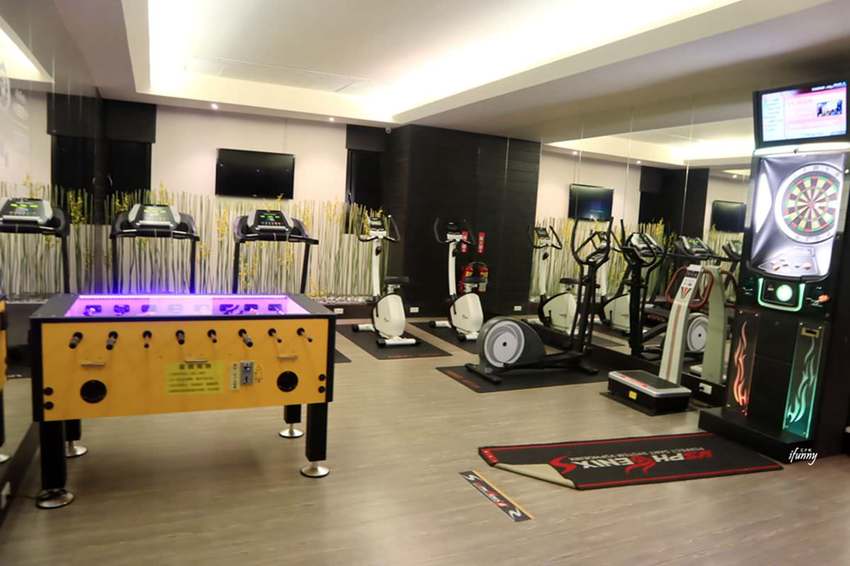 另一邊則是健身房,還備有足球檯及飛鏢機。旅伴們吃了宵夜覺得有罪惡感,還跑了一下跑步機消化一下熱量。
