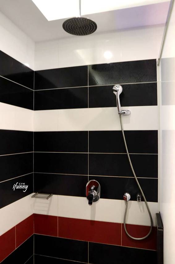 乾濕分離的淋浴室中,天花板有淋浴花灑。