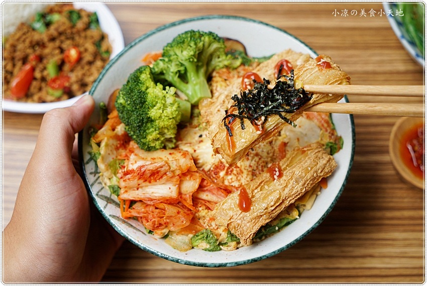 以異國料理、日式拉麵、丼飯、泰式打拋朱、熱炒多樣化呈現素食也可以很好吃又平價