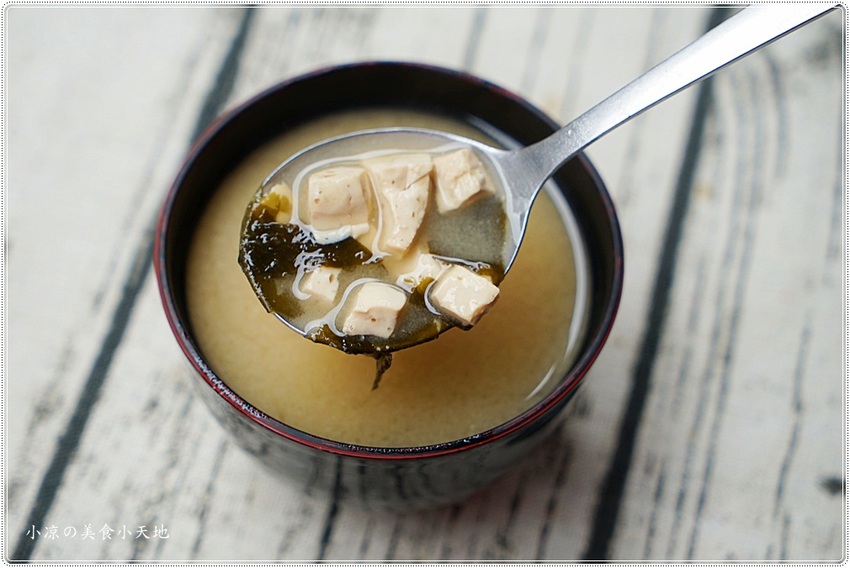 附贈的味噌湯也不馬虎,給的豆腐、海帶也不少,熱熱喝相當溫潤順口~