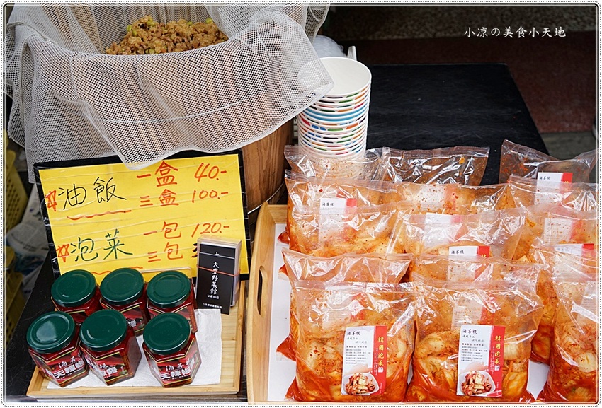 平常週四、五、六、日還會在向上市場內(向上北路VS華美街口)販售素食油飯、手工韓式泡菜