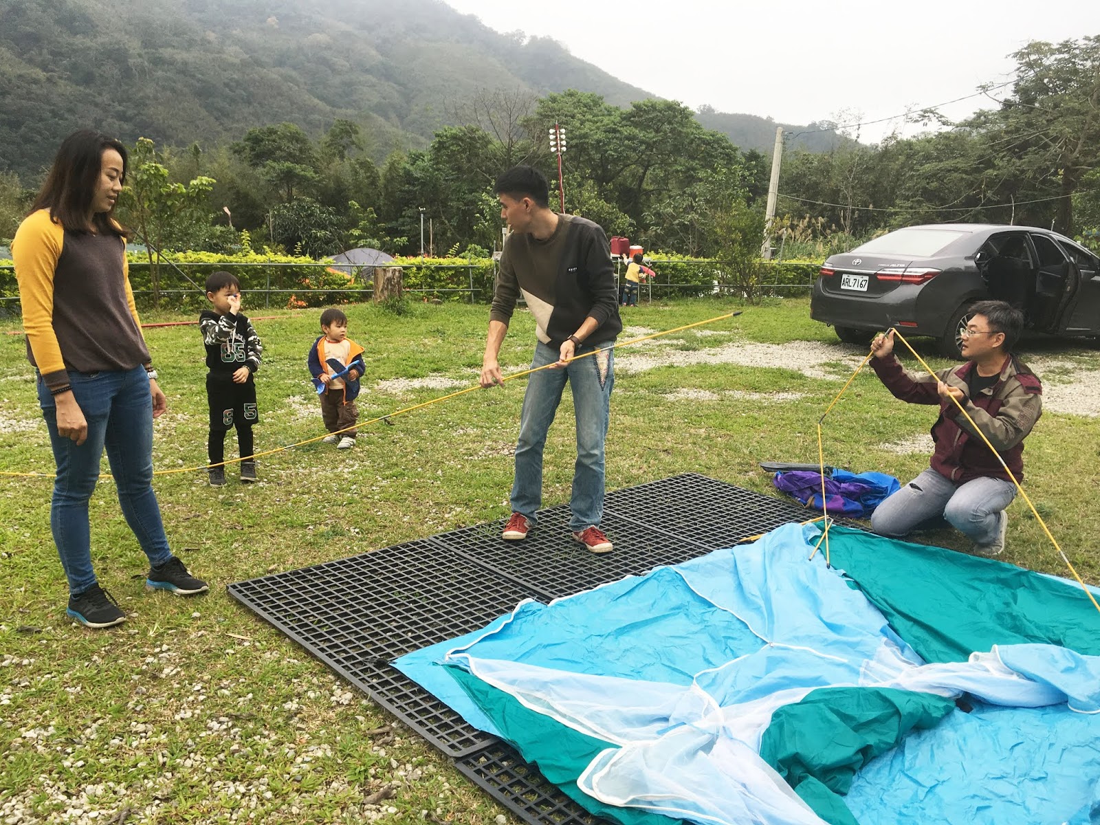 我們這次的五組家庭中就有兩組是露營愛好者,像我們這樣初次來露營的菜鳥,有老手陪同就放心許多了,有任何困難都有靠山的感覺。