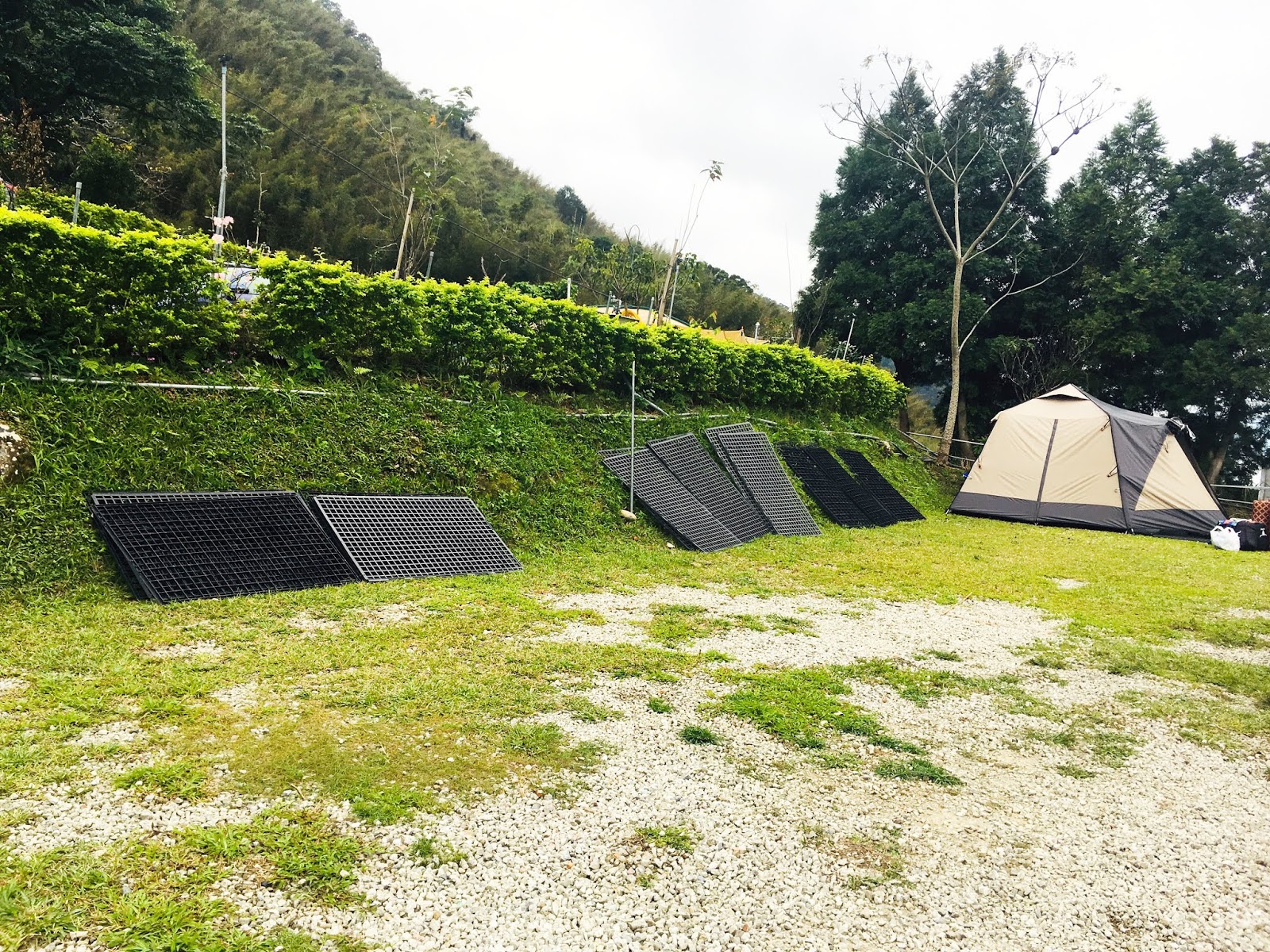 我們預訂的「Yukan尤淦區」,以老闆兒子的泰雅族名命名,是5公尺*9公尺的碎石草地,有共用水槽3組、電源電箱3組兩孔。來的時候,老闆已經幫我們準備好護草墊,這樣即便地上溼溼的也不用擔心喔!