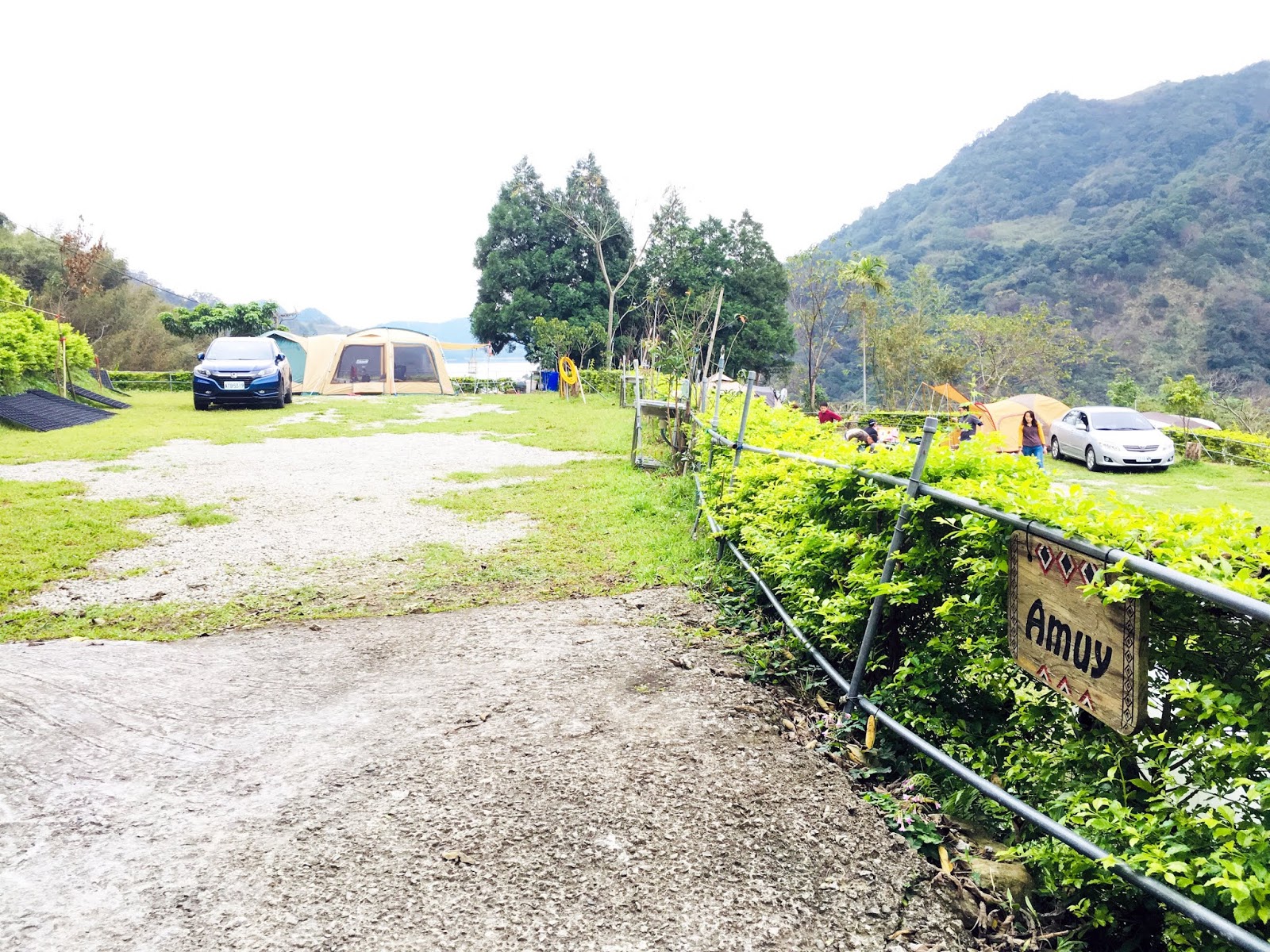 「Amuy阿木依區」以老闆娘的泰雅族名命名,是5公尺*10公尺的碎石草地,規劃為四帳,有共用水槽3組、電源電箱3組兩孔,每營位限5人入住。