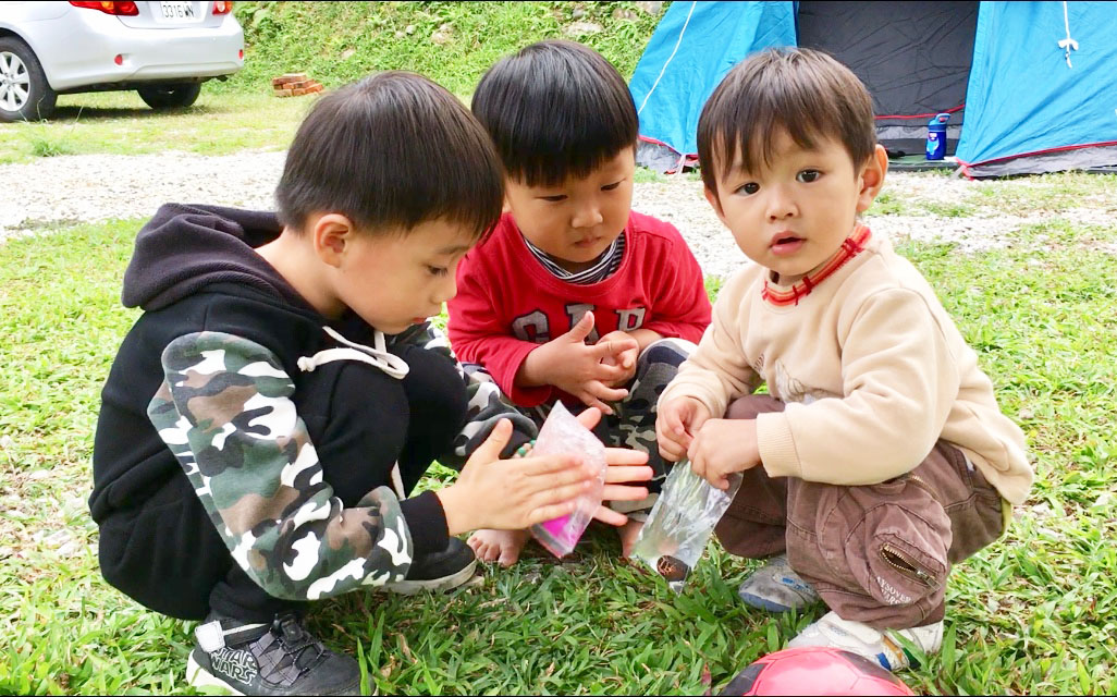 我們家第一次親子露營,因為有露營老手的爸爸、媽媽們耐心引領,進行的非常順利!同時要很感謝同行的爸爸、媽媽們的設想周到,雖然沒有事先討論,但媽媽們都已為孩子們準備充足的玩具,帶給孩子兩天一夜的精彩活動,留下了全家大小的美好回憶。