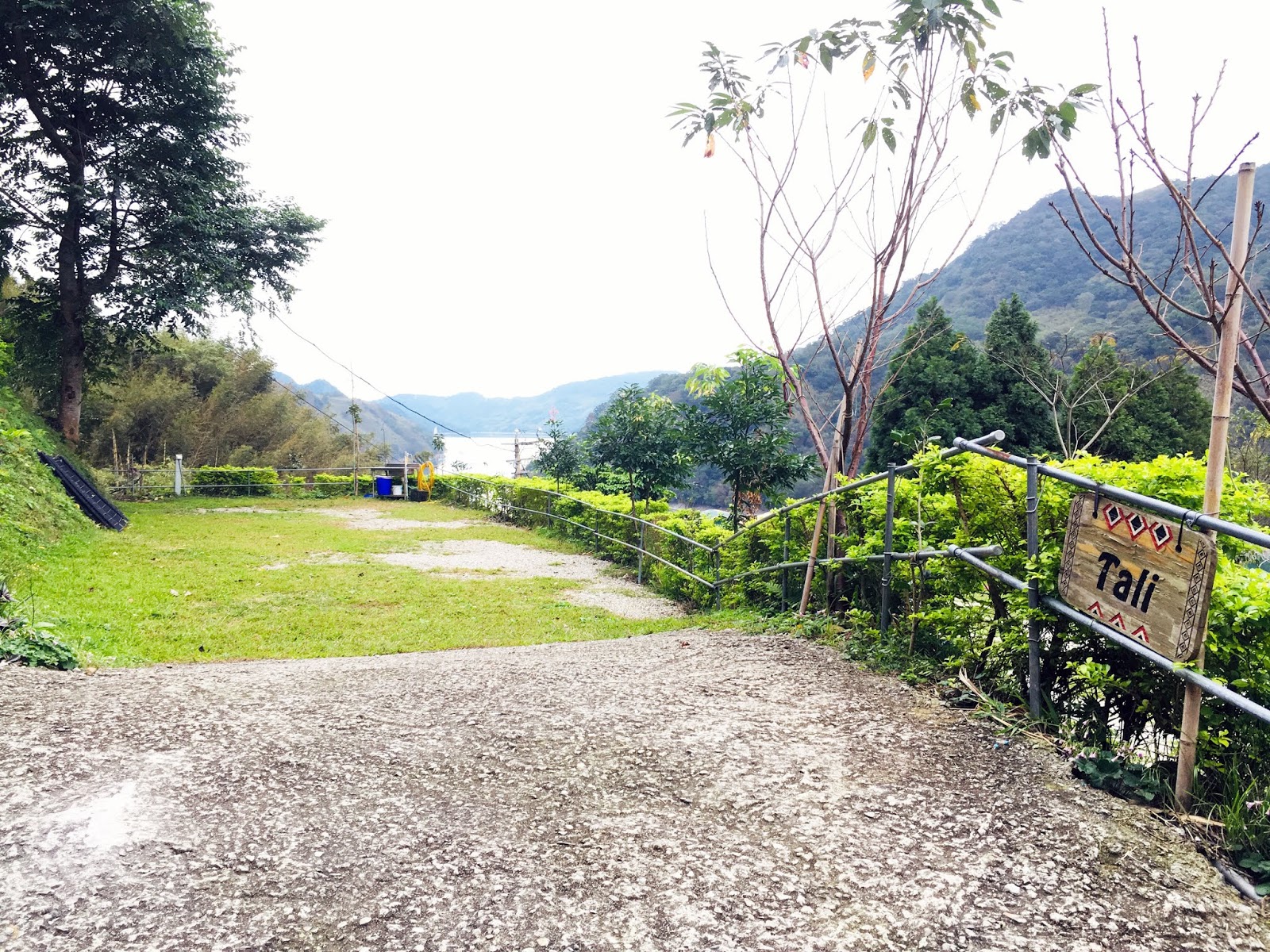 我們開車由上往下認識各個營地,佔地6公尺*12公尺的「Tali達利區」是一帳包區的VIP營地,「Tali」其實就是老闆的泰雅族名喔!碎石草地排水良好,有共用水槽1組和電源電箱1組兩孔。實際上可容納約四帳的營地,老闆特別規劃為一帳,很適合喜歡寧靜私密空間的客人。