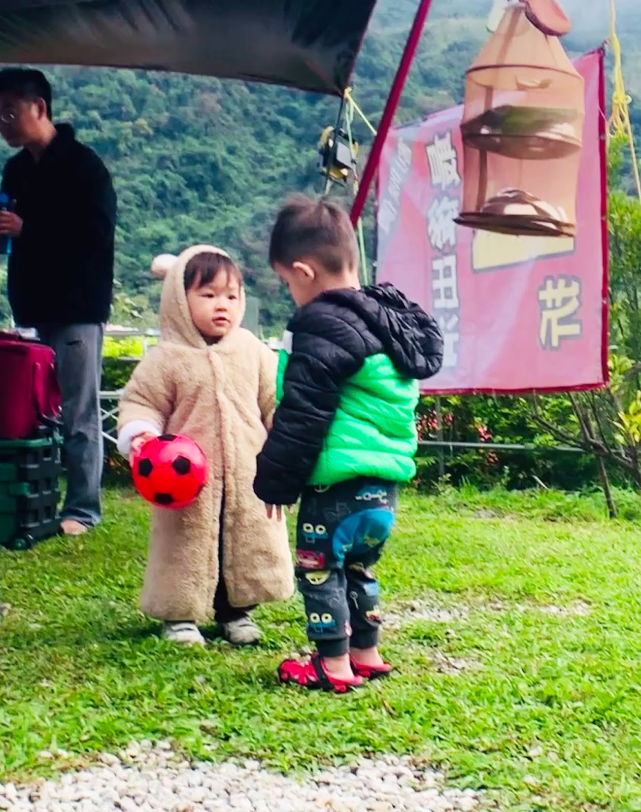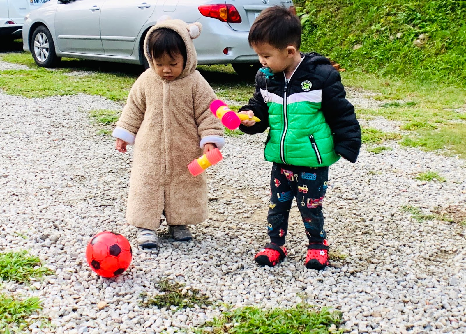 老公已起床為大家煮好清粥小菜,孩子們則是一貫的忙碌,大家一起探索哪裡有好玩的新事物,小福寶也在小哥哥的引導下學習分享和輪流,兩天一夜的相處,讓孩子們已經像是熟悉的好朋友一樣玩在一起。