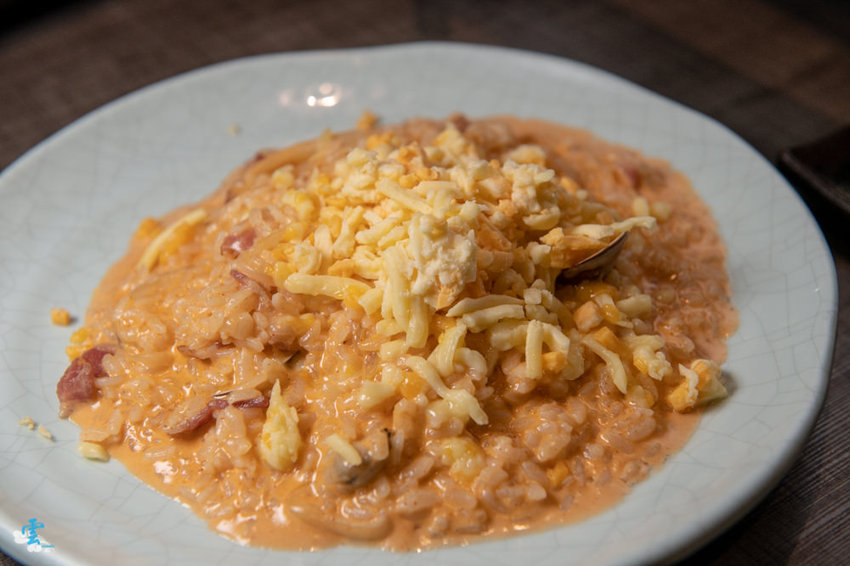 海鮮燉飯:上頭鋪著滿滿的起士,裡頭有著豐富的海鮮配料,搭配韓式辣醬海鮮燉飯,各類海鮮的鹹甜交錯的刺激味蕾,口感多層次又互不搶味,韓式辣醬讓滋味更形悠揚。