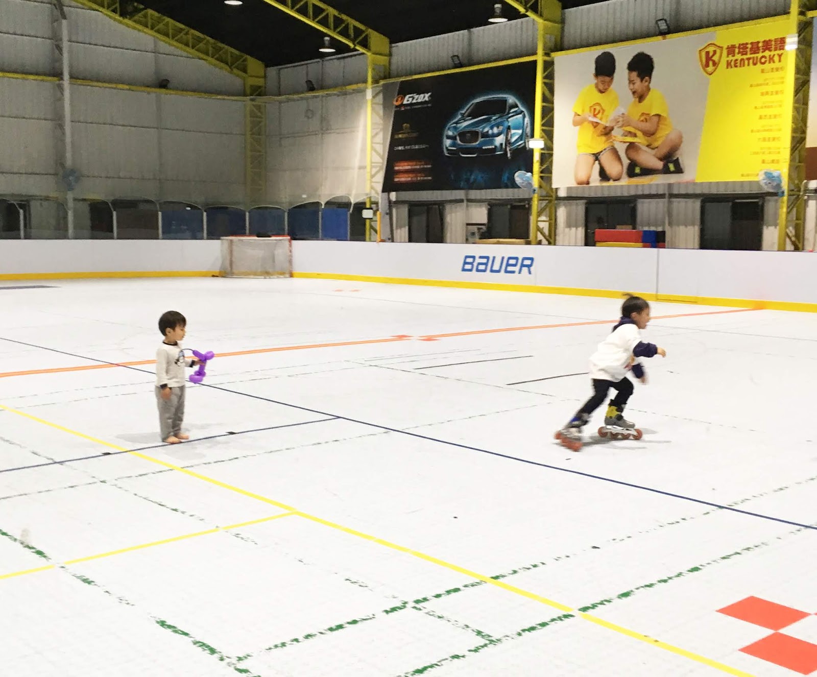 廣闊的「室內溜冰直排輪場」是全高雄第一座比照國際比賽規格的室內標準場地,也是國家級溜冰選手培訓的合格場地,是教練團隊特別斥資100萬引進美國進口的世界盃比賽專用地板,透過地板專屬的吸震功能,可保護兒童膝關節不受傷,也在外圍設置國際標準的防撞圍牆,讓孩子們可以安全有品質地在此學習直排輪和曲棍球。