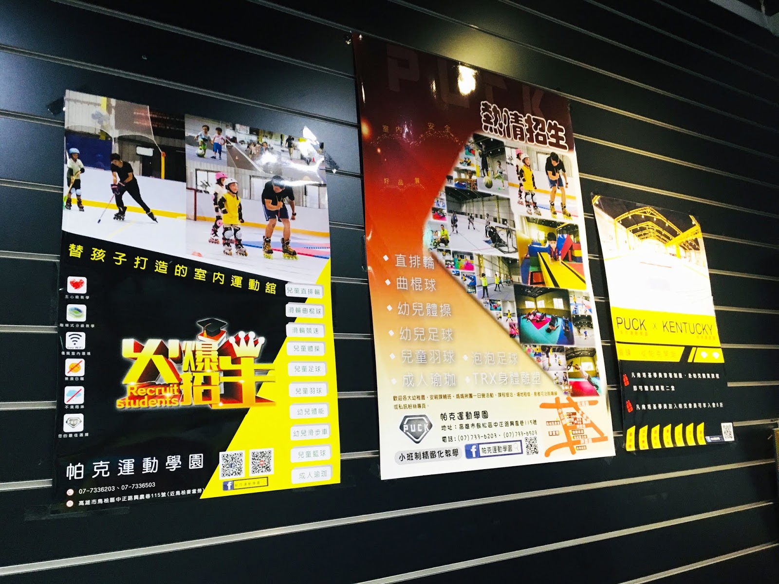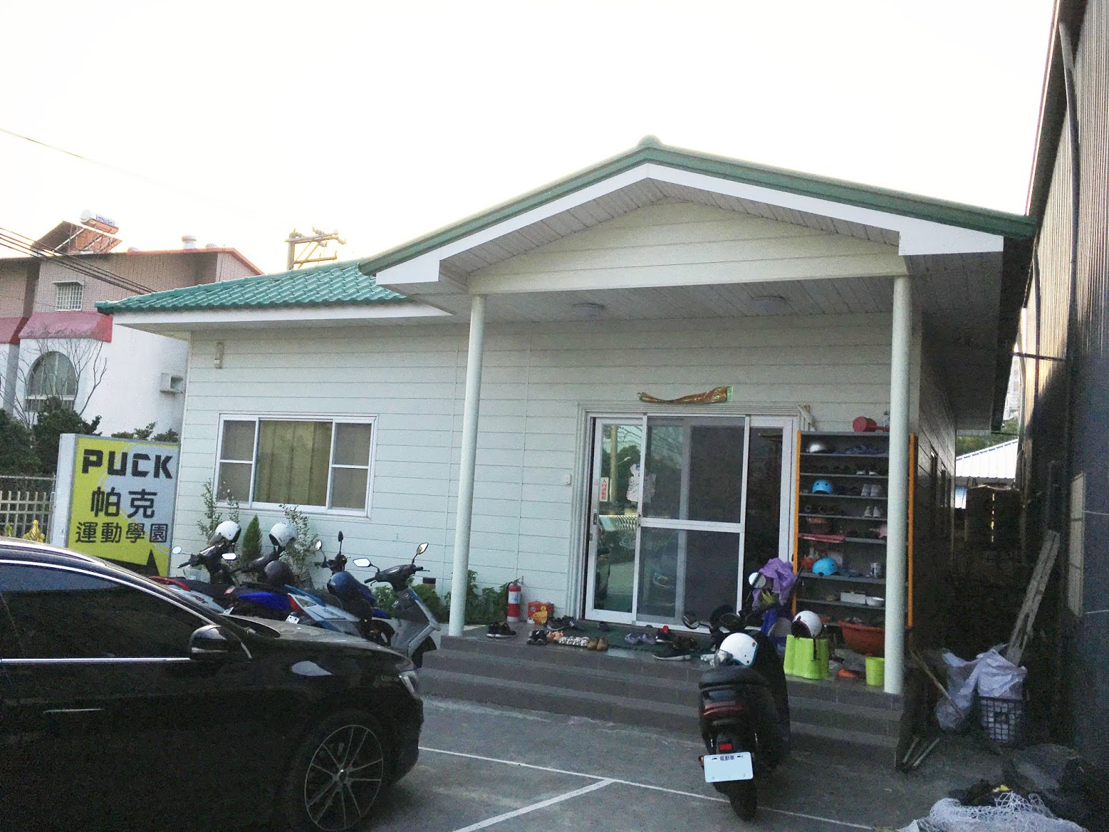 我們開車來到高雄市鳥松區的「帕克運動學園」,門口就有100坪的大停車場,停車相當方便。運動綜合館門口大大的「PUCK」相當顯眼,外框採超人標誌的設計,給人強大的力量感。以曲棍球球餅「PUCK」命名,是因為執行長歐佳和本身就是國家級曲棍球教練喔!