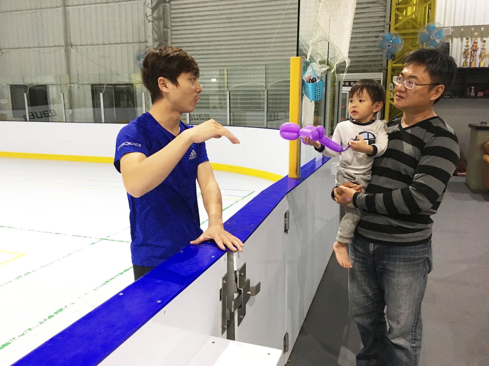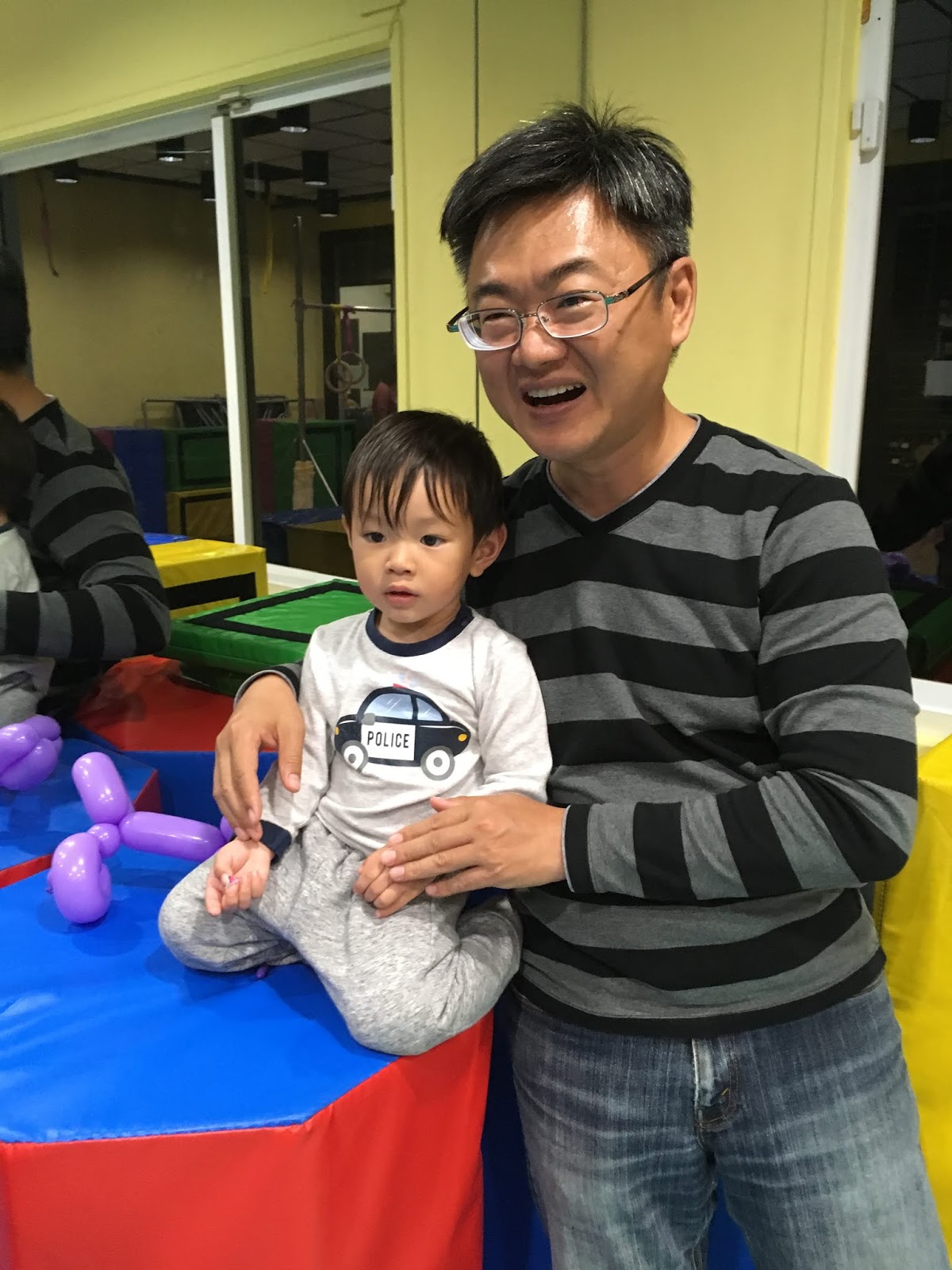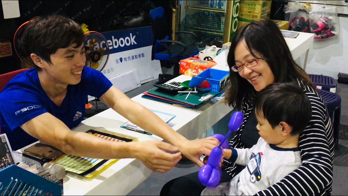 歐教練有教無類,從國小到國家代表隊都是他的學生,我帶著1y11m的小福寶,歐教練一樣也很有辦法,一見面就折一個狗狗造型氣球,馬上收服小福寶的心,歐教練還補充說明,在「帕克運動學園」的每一位教練都一定要會折氣球,是與孩子建立好關係的技巧之一。