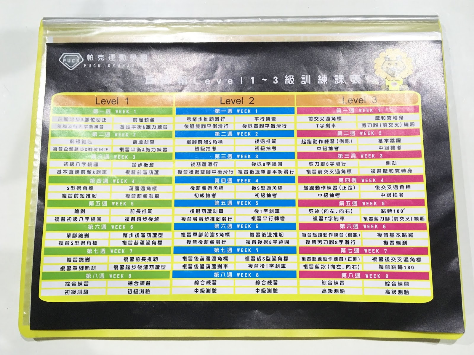 看到直排輪課程Level 1-3的課表,很讓我大開眼界,原來直排輪的技巧可以分得這麼精細和多元,仔細看每一堂課的內容,活動分析和難度分級得很精確,真的是相當專業,要是當年認識歐佳和教練,孩子們就可以繼續精進了!不過現在也不算晚,我還有小福寶可以來上課啊。