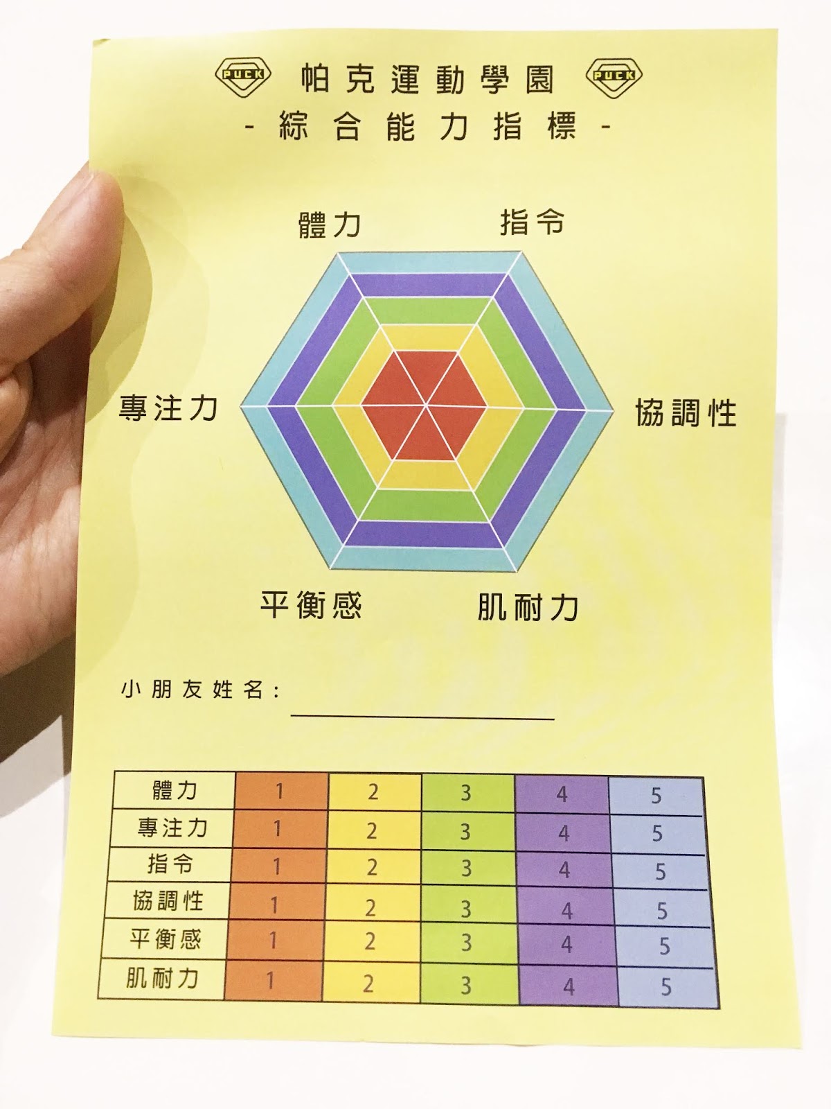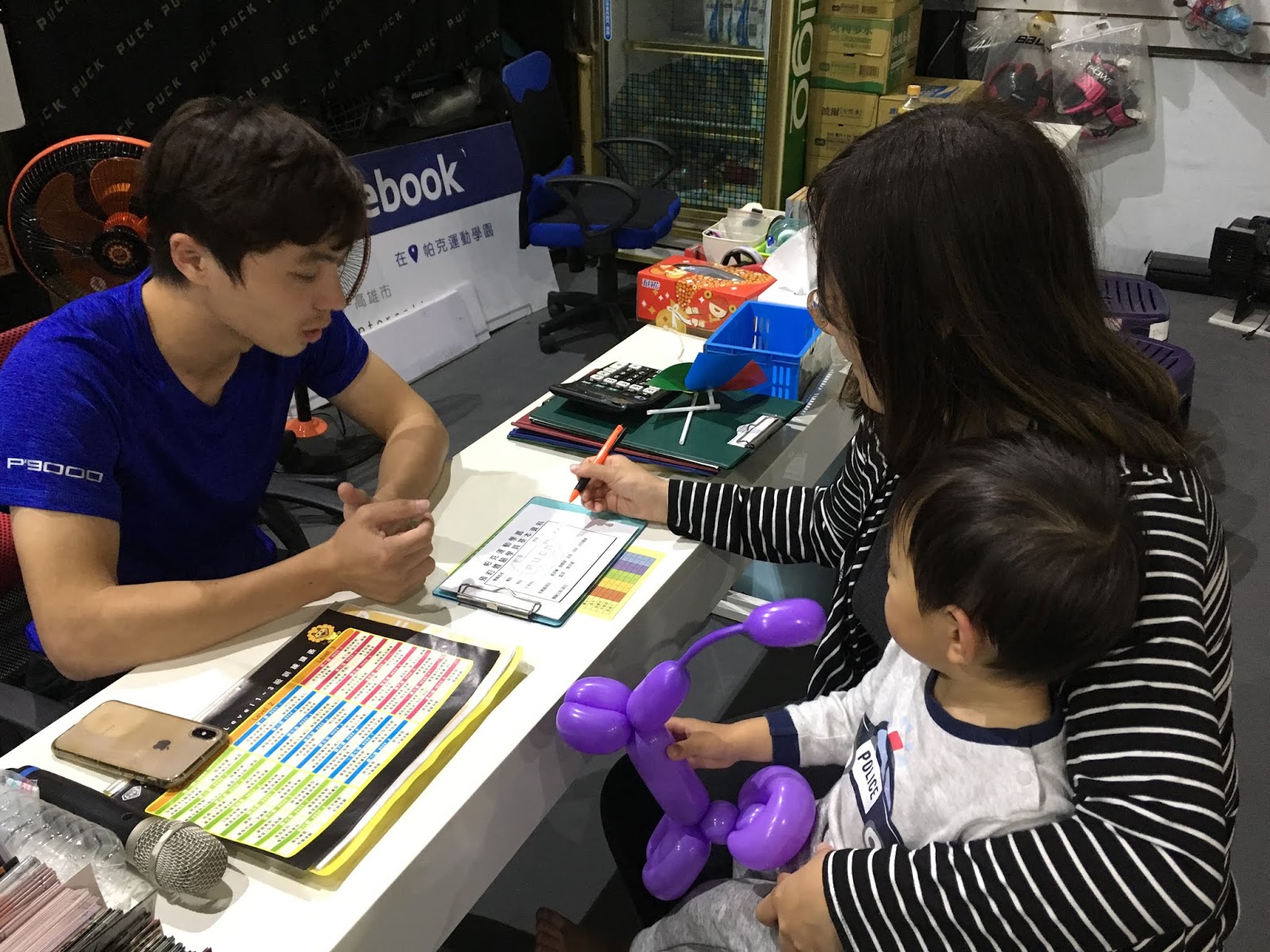 我們很幸運,這天正好由日理萬機的歐教練親自說明課程規劃,目前「帕克運動學園」的學生年齡從1y10m一直到成人都有,課程類型有體操、滑步車、直排輪、曲棍球、羽球、足球、籃球、瑜伽、TRX...等,選擇相當多元。