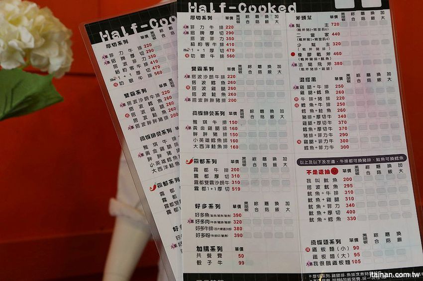 排餐的部分從150~720元價格都有,雞、豬、魚、羊、海鮮甚至是海陸雙拼通通有。