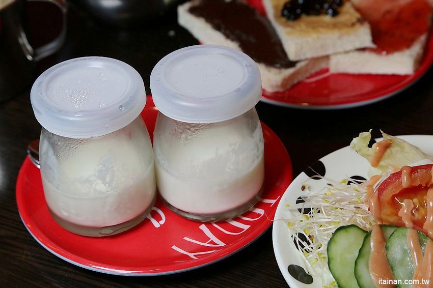 飯後小驚喜,來店按讚打卡就送一個鮮奶酪,當然要給他來一個。