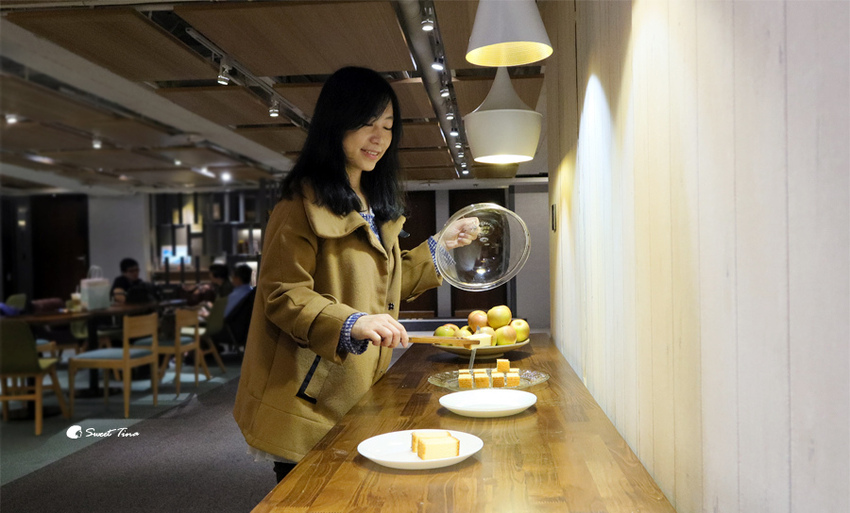 一旁的咖啡及茶包可免費自行取用,下午時段還會擺放餅乾、蛋糕。