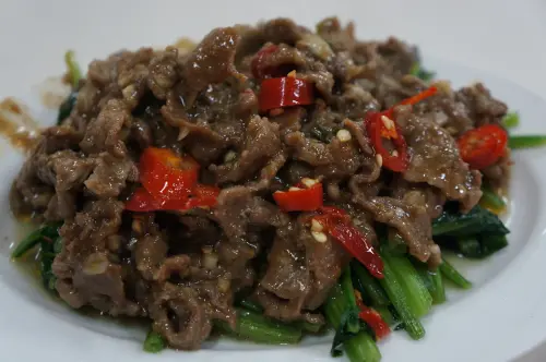 炒羊肉,一盤100元,辣椒老闆也是最後再炒的,在羊肉下面是青菜,一上桌就聞到滿滿的沙茶羊肉香