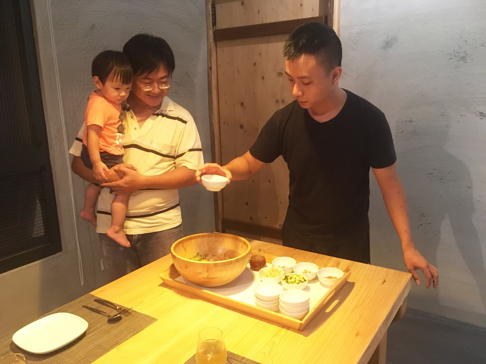 原本婆婆要跟我們一同前來,因為婆婆吃得較養生,和民宿主人預定的是較清淡的日式料理,但後來婆婆有事無法同行,重口味的我們立即改為酸辣的泰式料理,行前看IG和FB上老闆色香味俱全的大作,實在好期待今晚的餐點。