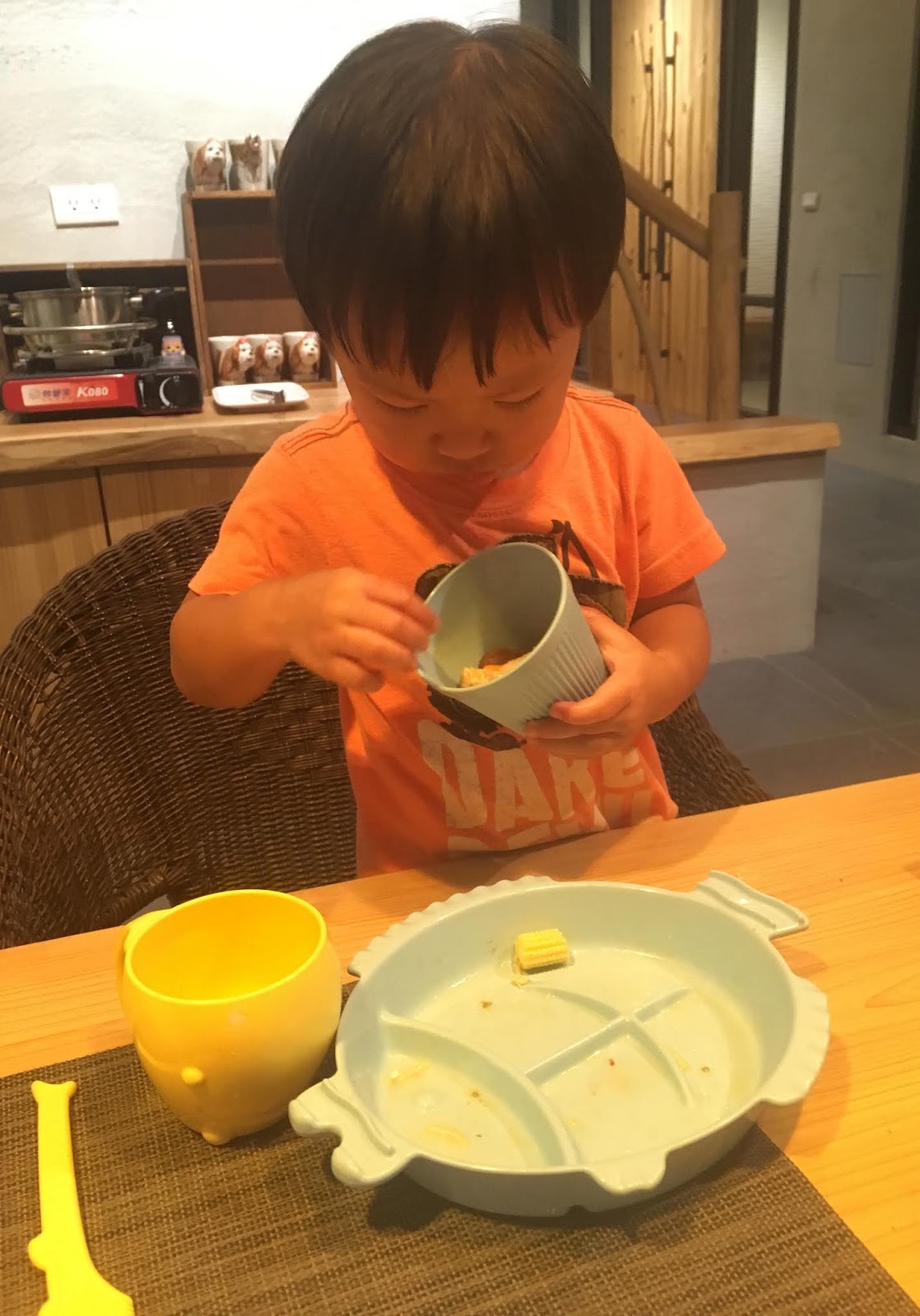 我們在舒適的床鋪上獲得一夜好眠,隔天清晨小福寶一早就醒了,讓我們無法多賴床,於是下樓享用民宿主人現作的特製早餐。