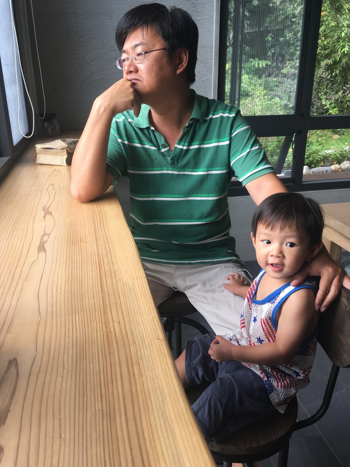 | 精神抖擻的小福寶和想睡覺的爸爸 |
