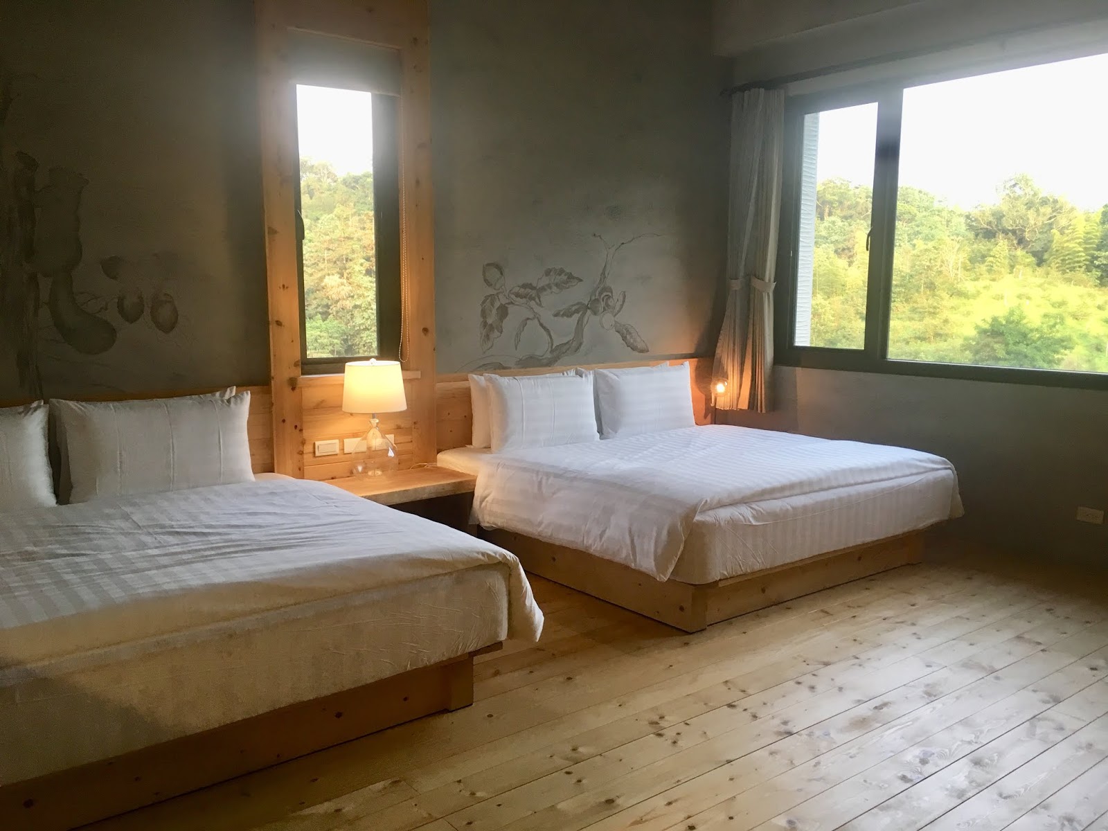 二樓的「曦●呢喃」四人房格局和三樓「漾●眺望」四人房一樣,床頭牆上畫的是在林間行走的梅花鹿,這讓我很驚訝,民宿主人說牆上畫的都是這附近有的動物,原來這裡看得到梅花鹿?!後來問民宿主人,以前貓囒山有很多梅花鹿,但最近幾年因為觀光客變多,現在很少見了,但偶爾還是會出現喔!