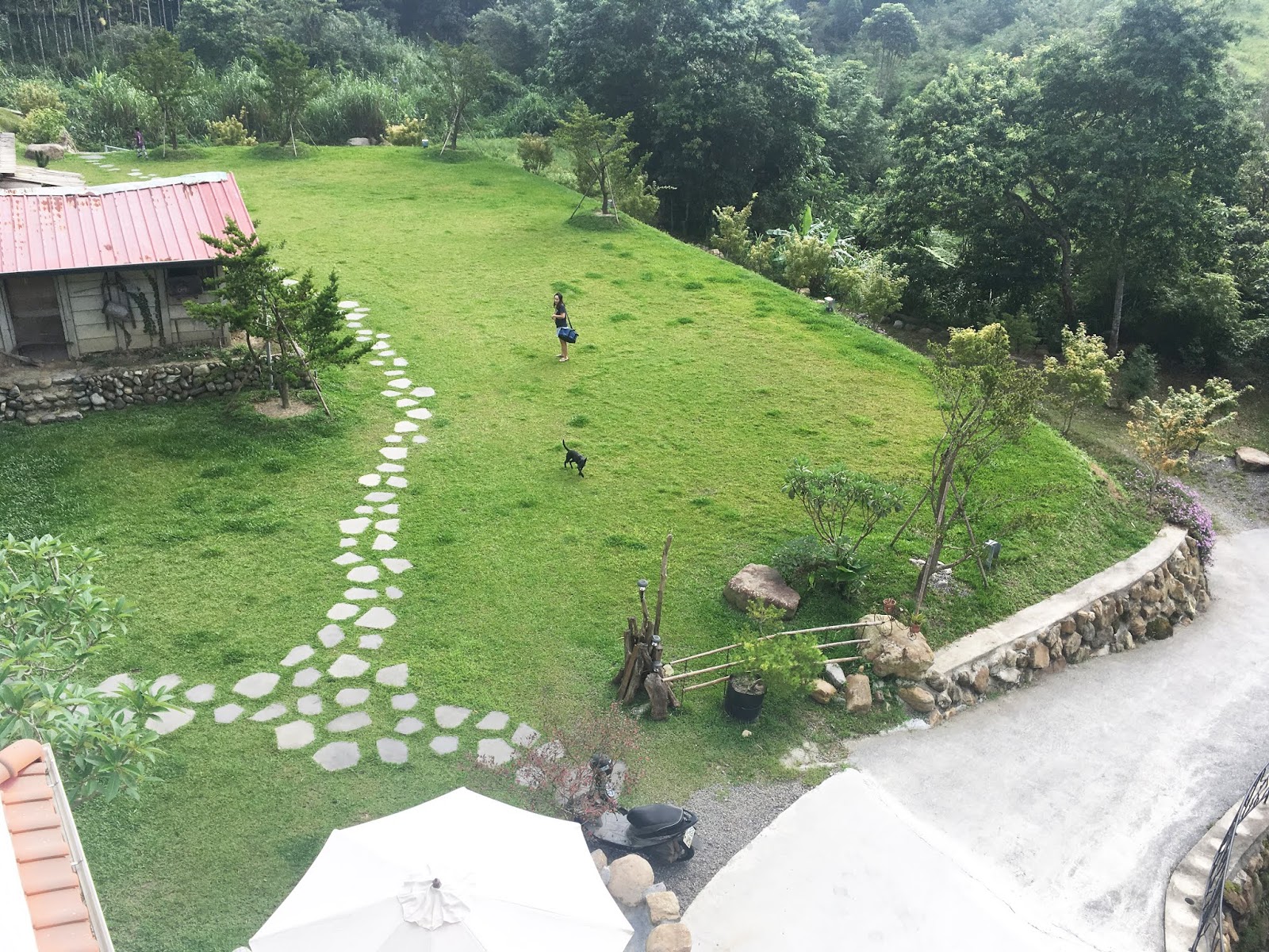 我們從台南一路導航到「八番私人住宅 Residence 8」,結果不小心開過頭跑到貓囒山上的「行政院農業委員會茶業改良場魚池分場」,後來打電話給民宿主人,才知道剛剛有個隱密的岔路是通往民宿的,民宿主人請家人騎車來帶我們,我們終於在山腳下看到「斗內籽露營區」和「八番私人住宅」的招牌,隱藏在林蔭間的小路感覺像是要前往秘境一樣。