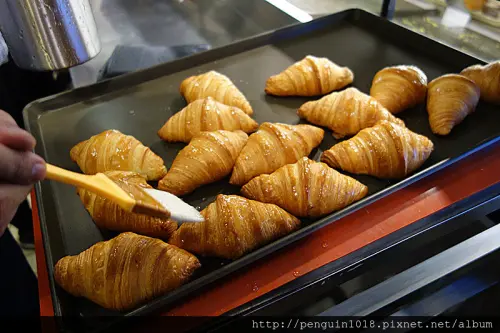架上滿慢的可頌,還有剛出爐可頌的香氣衝斥在整個空間內,香氣四溢讓人忍不住尋找這般滋味
