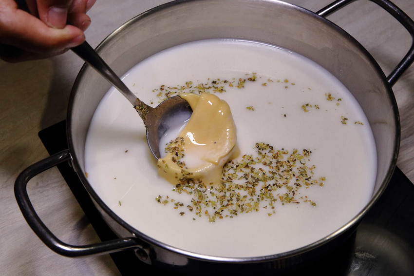 山藥牛奶湯,濃郁的牛奶湯頭,搭配一整片起司入鍋,非常的濃醇香
