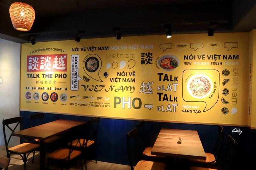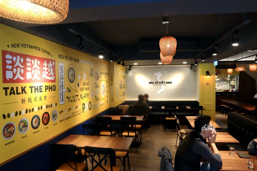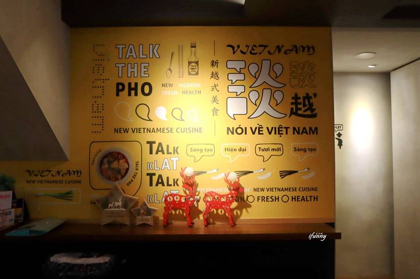 談談越Talk The Pho一進門的櫃檯,大大的店名寫著新越式美食,因此裝潢、餐點都給人不同以往的印象。