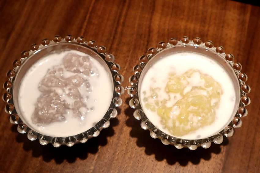 越式手工甜點有綠豆、芋頭、米豆椰漿三種,我們選了前兩者,據知這是沿襲自越南媽媽的家鄉手製甜點。吃來是微甜不膩的口味,芋頭很香濃,綠豆也是天然好滋味。這是目前打卡即招待的甜品。