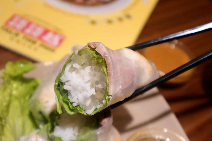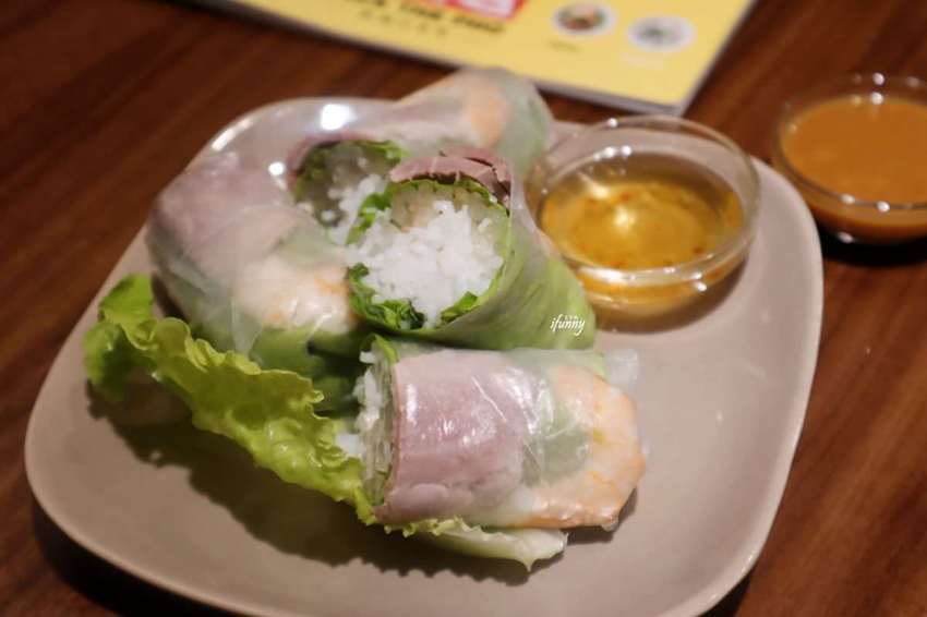 升級套餐加價 $125,艾方妮選了炸春捲及越式滴露冰咖啡。