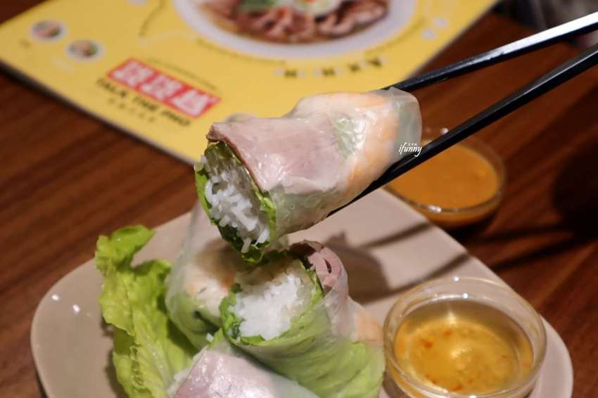 使用越南米粉,搭配鮮甜蝦仁以及伊比利豬肉,可以沾附附上的特調魚露食用。