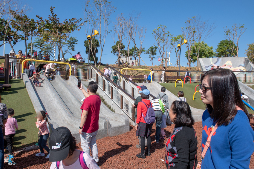 位在中路特區的風禾公園,原本是全國第一個以防災為主題規劃設計的市民公園,桃園市政府為了讓公園更加親近市民,利用公園類盆地地形的高低差,規劃設置了一系列設施,包括多樣化的溜滑梯、沙坑遊戲區、草地舞台區、林間咖啡休息區、草坡觀賞遊戲區與親水河道等等,結果讓風禾公園成了近期超夯的渡假景點,尤其是超長的滾輪式溜滑梯更成為大家討論的話題之一,全長大約50公尺,從上面溜下來只需要30秒,加上旁邊還有各式溜滑梯、沙灘區與廣大的草坪,也難怪大家都趨之若騖。