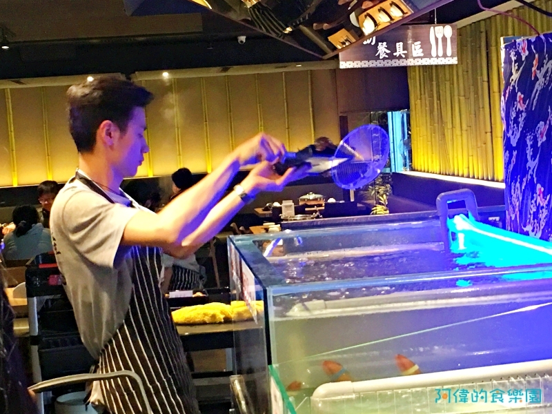 一進門就看到帥哥店員在幫客人撈海鮮,是在撈什麼呢?