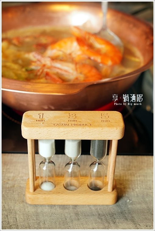 ▼服務人員還會貼心附上沙漏,讓大家更可以精準掌握蝦子的熟度!