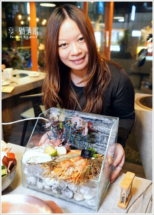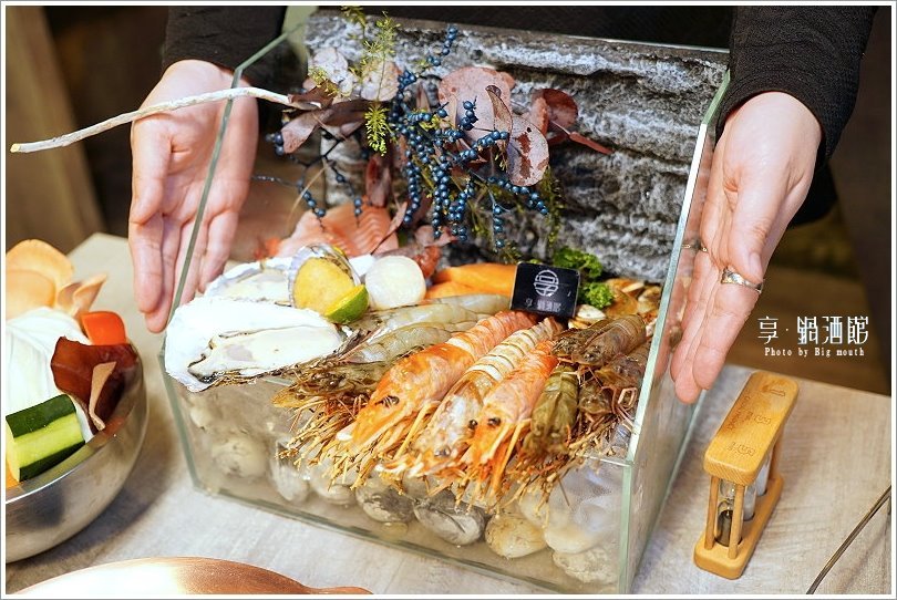 ▼看到這個水族缸讓大口想到以前在玩的生態缸,沒想到也可以當作擺盤使用~裡頭還擺了滿滿的蝦子及各式海鮮,特別又吸睛!