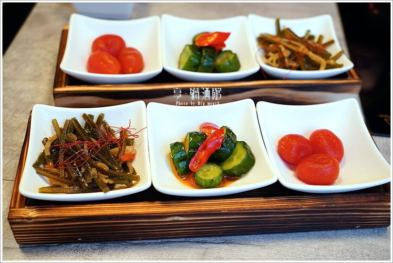 ▼他們家的鍋物套餐除了主餐之外,都有附上菜盤、小菜、附餐(白飯、咖哩飯、冬粉)、飲料(美式咖啡、奶茶)、甜點,多元又豐富!首先上桌的是自製小菜,服務人員建議可以從微微酸甜的釀番茄開始吃,接著是醃漬小黃瓜、海帶芽等依序享用,吃起來清爽開胃又解膩!