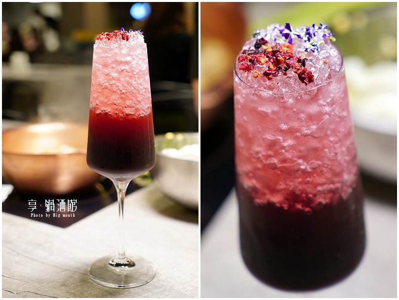 ▼老闆特調,這杯也是老闆用來招待朋友或是熟客的!裡頭採用黑醋栗、蔓越莓、覆盆莓下去混搭而成,再加入氣泡水形成漸層的視覺,最上頭在放上三種莓果的果乾及食用花,看起來夢幻又吸睛;這杯獨特的飲品一次滿足了嗅覺、視覺與味蕾的三重饗宴,享用前記得先攪拌,喝起來酸香甜美,還帶點微氣泡的刺激感,搭配餐點也非常適合!