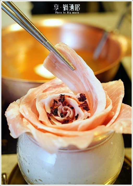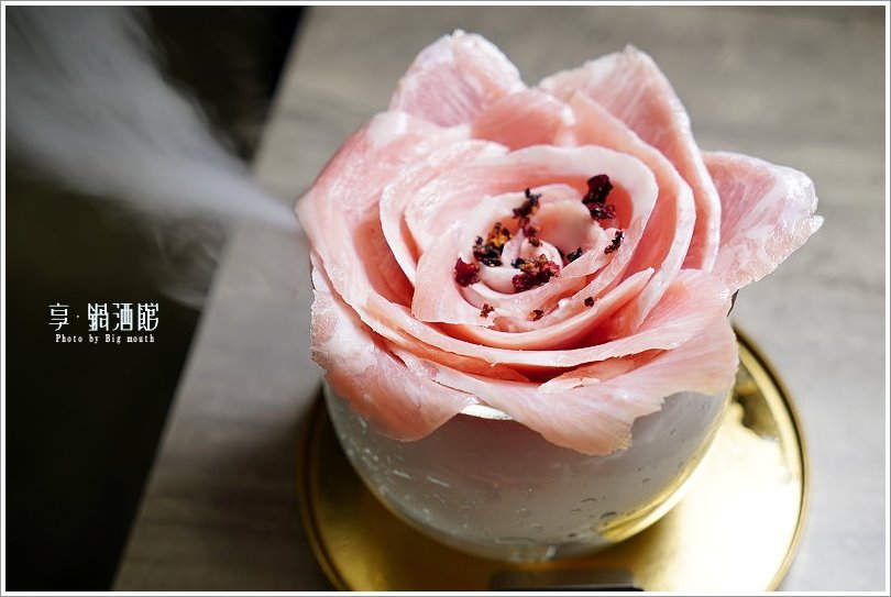 ▼松阪豬帶有一點厚度,搭配細膩粉嫩的油花、可食用的乾燥玫瑰花,感覺格外討喜!