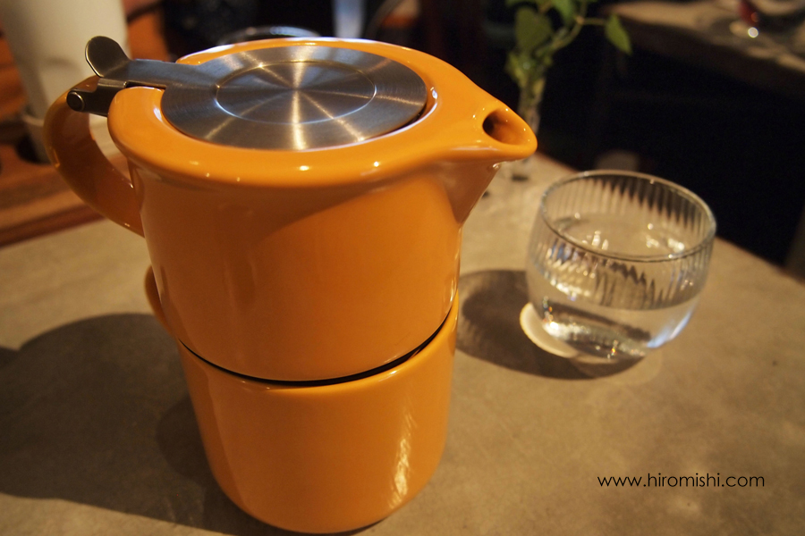 極有設計感的保溫茶壺,上層放置茶葉,下層裝著過沖泡過的焦糖茶