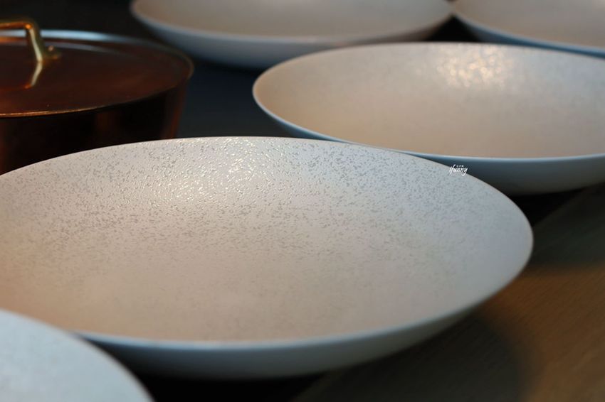 準備放置牛排的盤子有著高雅的顏色及紋路。