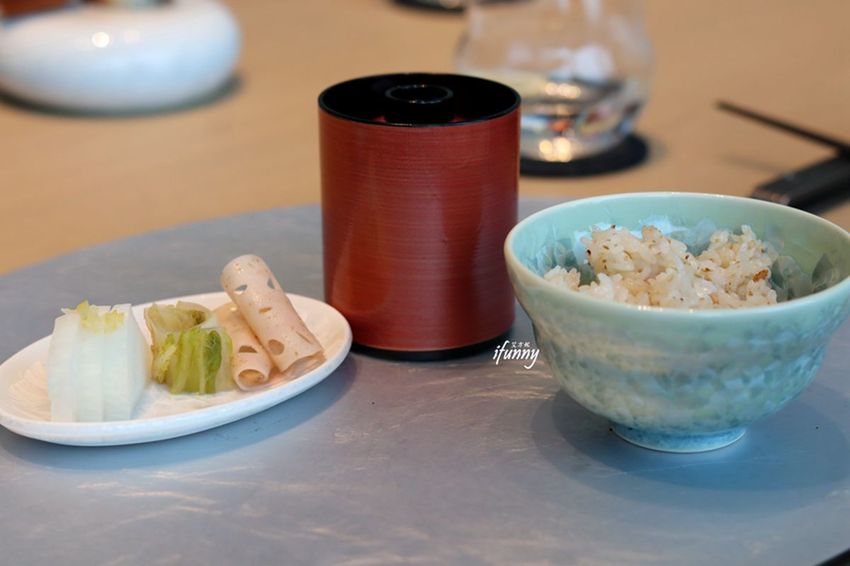 盛裝米飯的碗及湯品的器皿十分雅緻,每個人都不盡相同的顏色,於是大家不僅拍食物,也想拍下這令人著迷的食器。
