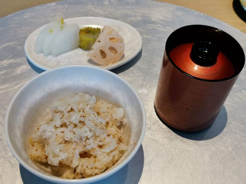 漬物是柚子蘿蔔、醬油白菜及梅漬蓮藕。