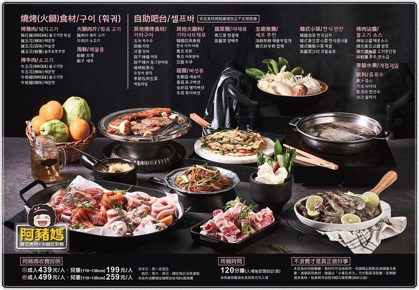 阿豬媽아줌마韓式烤肉x火鍋吃到飽、營業時間:週日~週四11:00~22:00(收客至20:00)