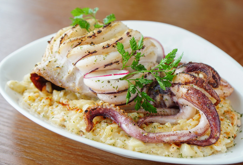 ▼香煎軟絲龍蝦汁燉飯 $480